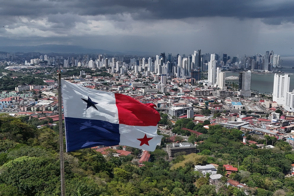 Una bandera panameña ondea en el cerro Ancón, con el horizonte de la Ciudad de Panamá como telón de fondo, el jueves 2 de mayo de 2024. Panamá celebrará elecciones generales el 5 de mayo. (Foto AP/Matías Delacroix)