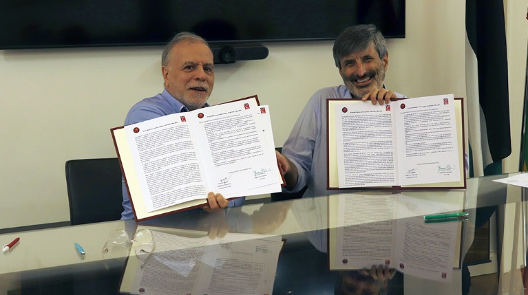 La firma del histórico acuerdo por parte del secretario general FLAI-CGIL, Giovanni Mininni y del secretario regional de la UITA, Gerardo Iglesias, se realizó en la sede de la Escuela Político-Sindical de la Fundación Metes¹.