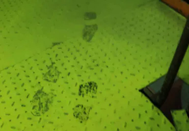 IMAGEN: Una pérdida de material radiactivo en la planta de Dioxitek, en Alta Córdoba, según empleados. En el análisis de chequeo por IA se dice: «En la imagen de las huellas, se observa cómo las pisadas interactúan de forma natural con el relieve de la chapa de diamante (suelo antideslizante). El material amarillo se ha desplazado o comprimido siguiendo exactamente las hendiduras y relieves del metal, algo que es extremadamente complejo de falsificar sin dejar bordes artificiales o halos». (Imagen compartida por empleados)
