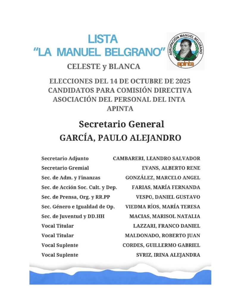 Desde la lista ganadora destacaron el “compromiso de continuar trabajando por los derechos laborales, la mejora de las condiciones de trabajo y el fortalecimiento del rol del INTA como organismo público al servicio del desarrollo nacional”.