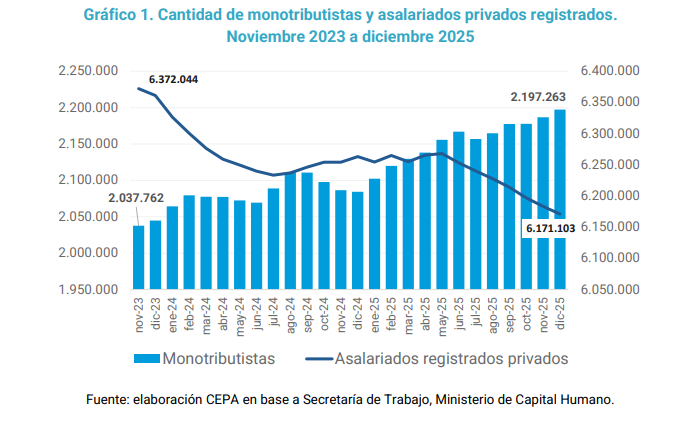 El trabajo de CEPA marca que detrás de los números puede verse el perfil de empleo que genera el gobierno libertario. En el marco de la creciente fragmentación del mercado de trabajo, el centro aseguró que se observa “una transformación sustantiva en la noción del trabajo ‘típico’ hacia modalidades promovidas por el capitalismo de plataformas”. Este fenómeno introduce “desafíos metodológicos críticos para la medición de la desocupación, debido a la capacidad de estas herramientas para absorber mano de obra bajo condiciones de ‘autonomización ficticia’”.